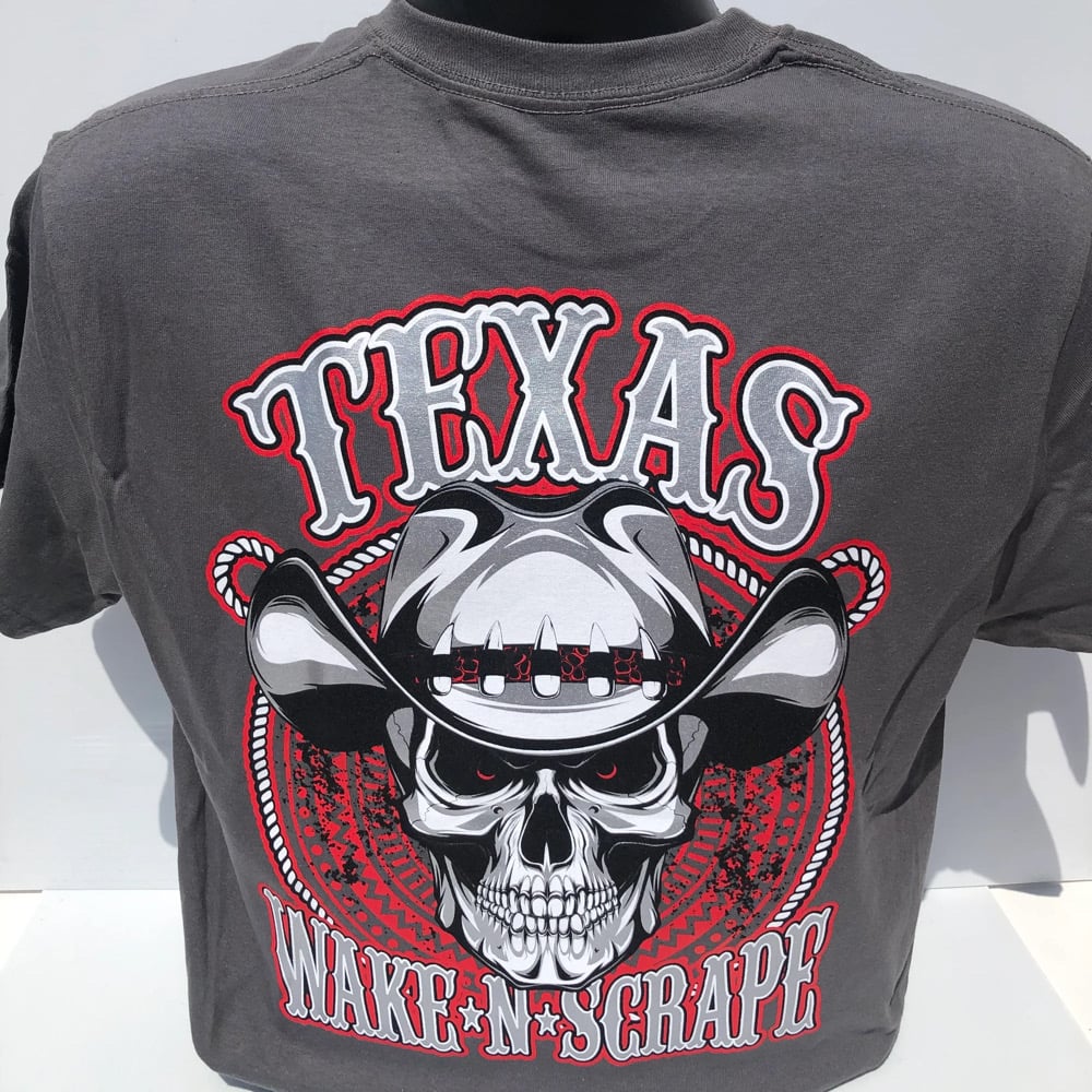 Front of the shirt has pocket print of TWNS, Mad Gear & Hatermade.